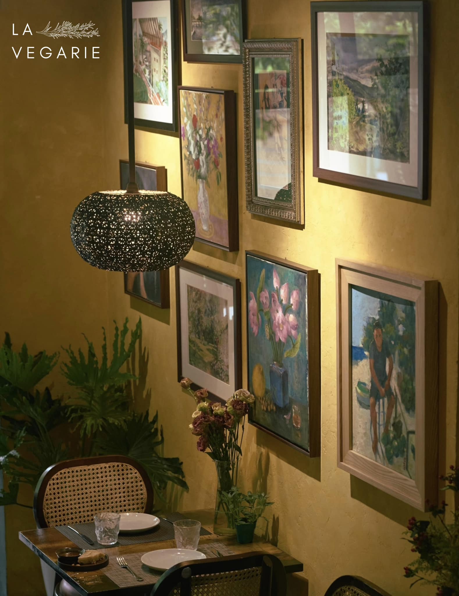 Ở La Vegarie, chúng tôi muốn mang đến không chỉ những món chay sáng tạo và đặc sắc, mà còn là một không gian tràn ngập cảm hứng nghệ thuật, nơi bạn sẽ được thả hồn vào những bức hoạ độc bản hay bản nhạc cổ điển êm đềm.